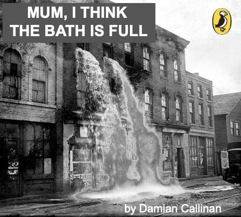 ‘Mum, I think the bath is full!’ I yelled over the deafening torrent, as water freely cascaded out of the upstairs windows. I desperately held on to the door frame as the fast moving current deposited all of my wordly possessions onto the street below.