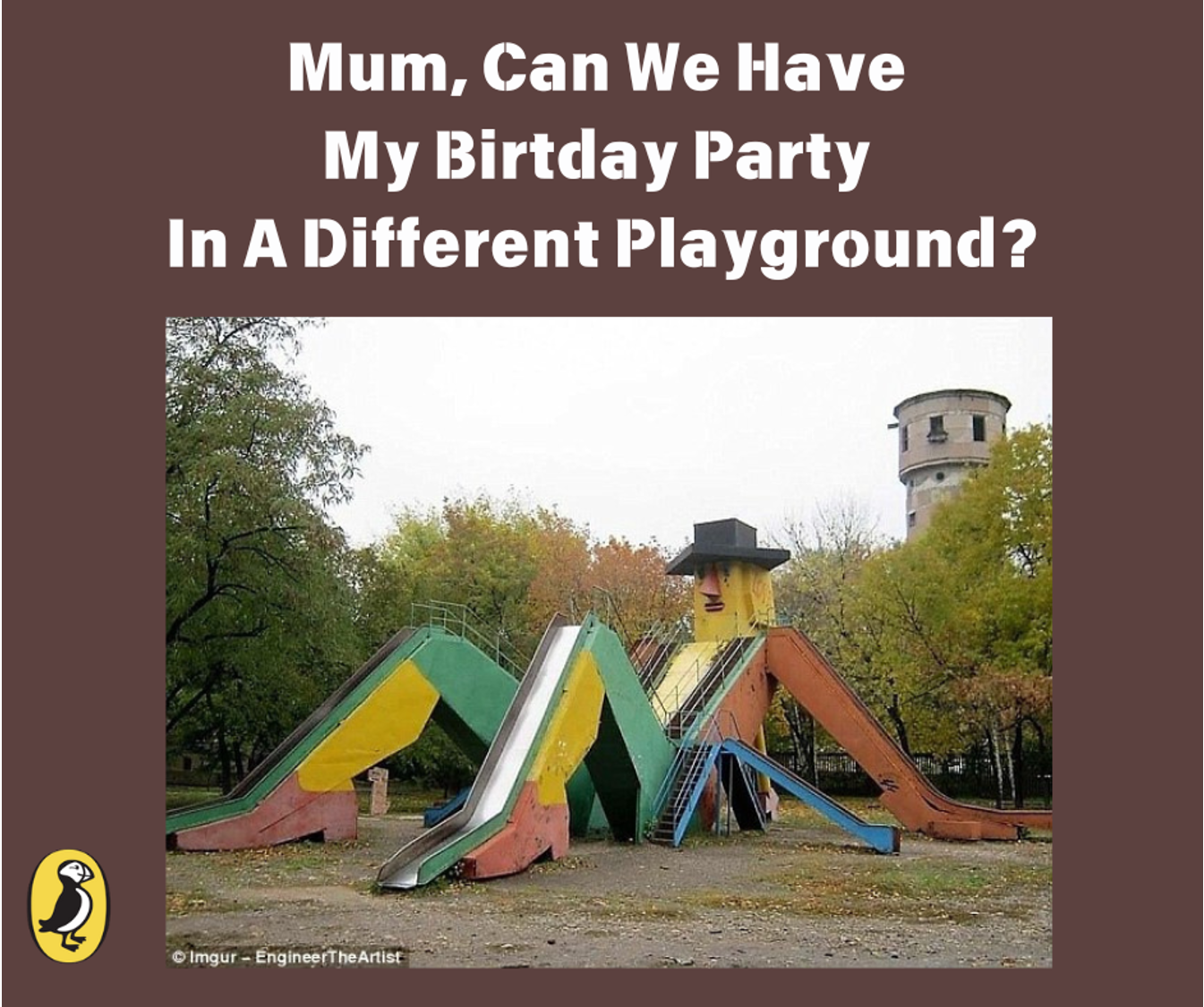 ‘Oh well then, you find someone nice to play with,’ she suggested. ‘Mummy will pick you up in a few hours after she’s finished having a few wines with Aunty Nelly, OK?’